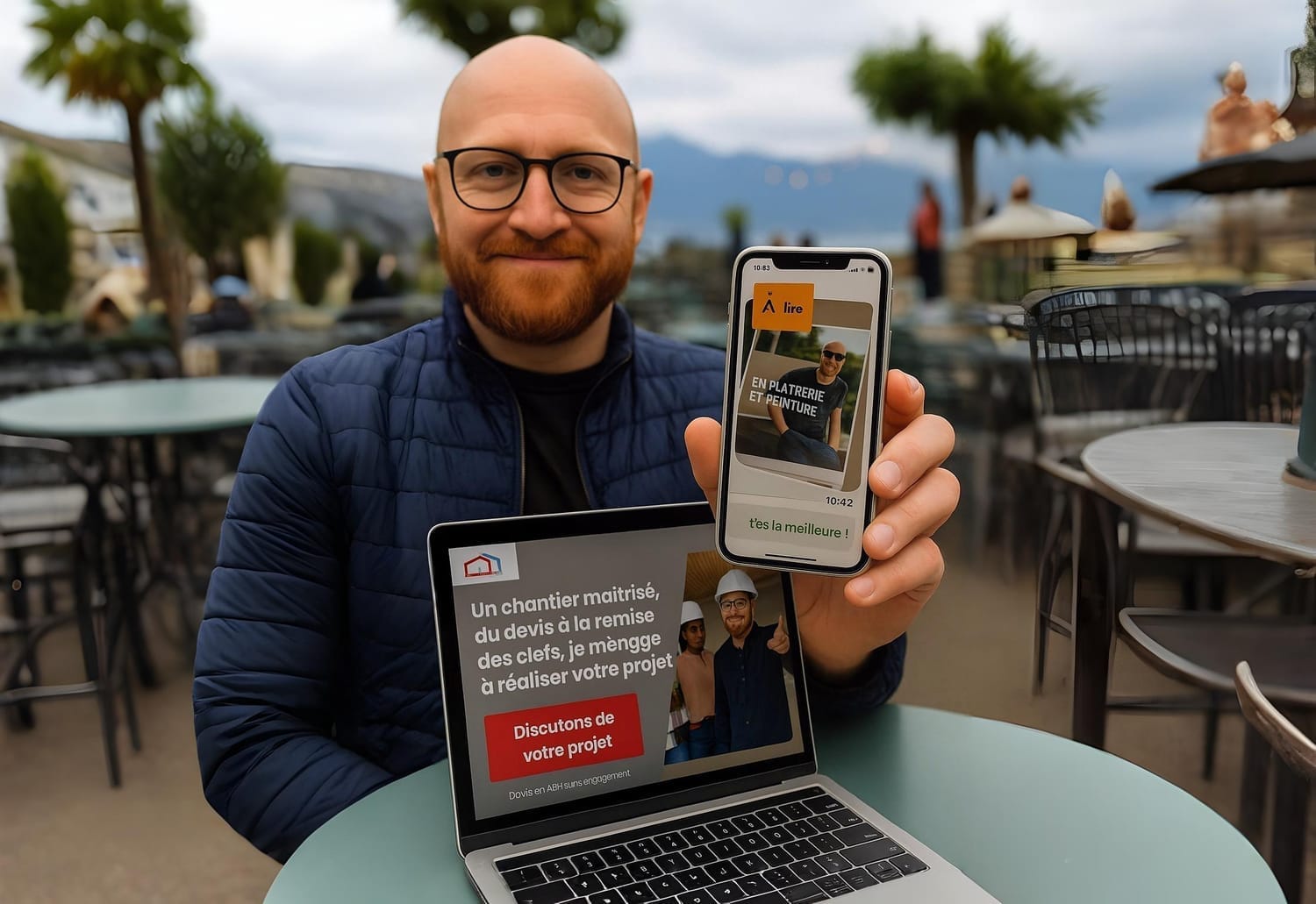 Ma brochure a été livrée en trois jours, avec mes photos de chantier. Facile à envoyer par WhatsApp, elle me donne un vrai avantage