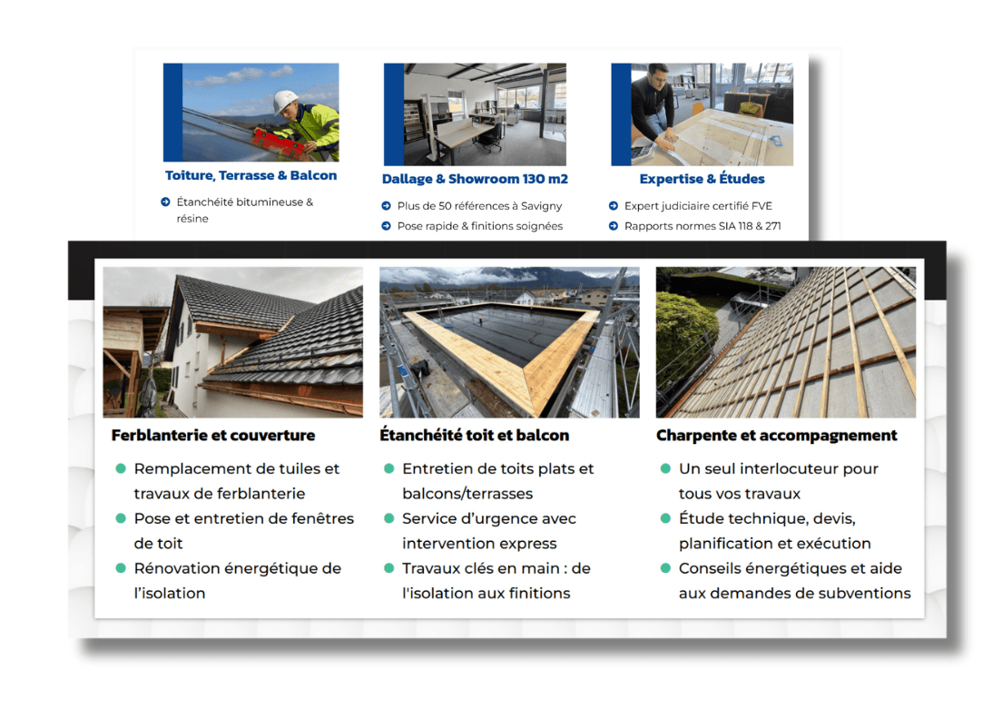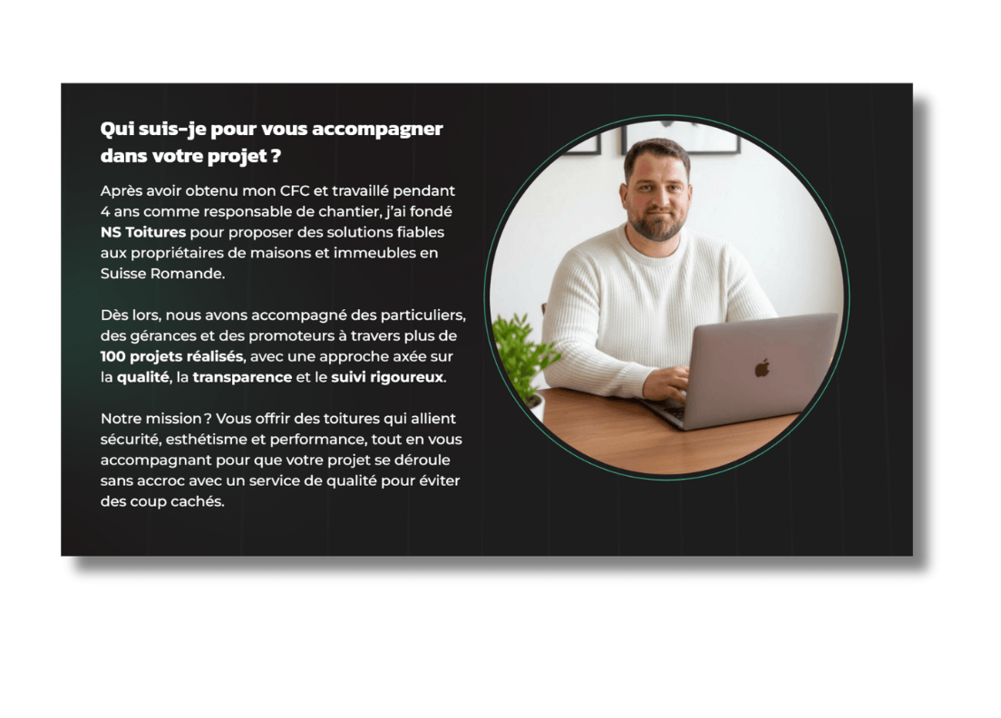 Mes clients comprennent immédiatement mes services. La mise en page est soignée et professionnelle. J’ai gagné du temps et une image bien plus pro