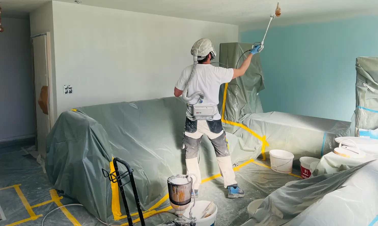 Ce chantier concernait la rénovation peinture d’un appartement occupé à Ollon. L’intervention s’est déroulée en présence des habitants, nécessitant une organisation rigoureuse et une protection complète des espaces.