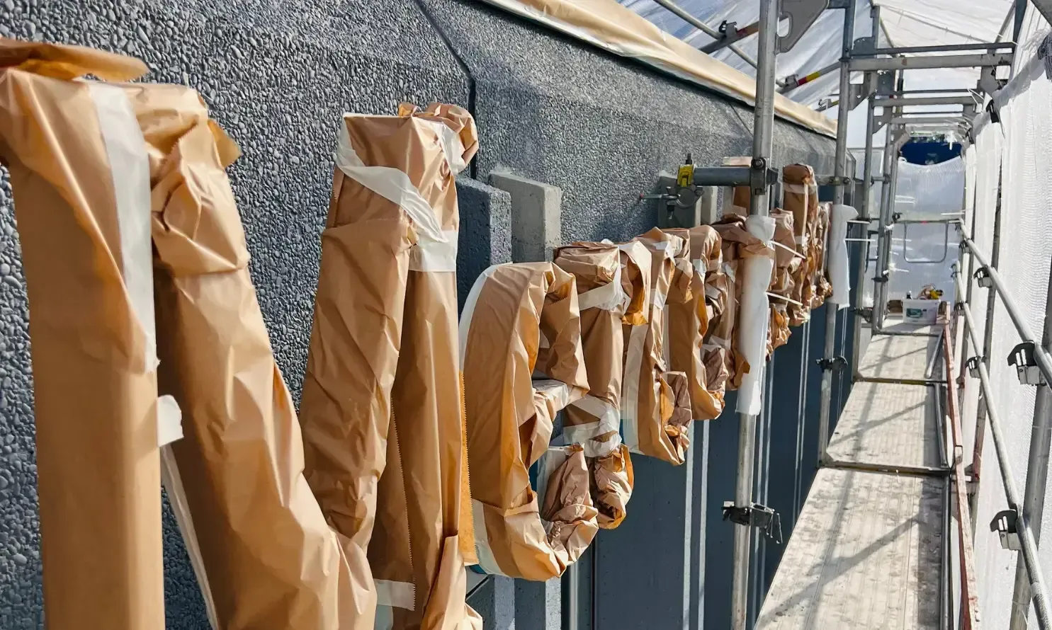 Travaux de protection et finitions techniques sur éléments extérieurs exposés.